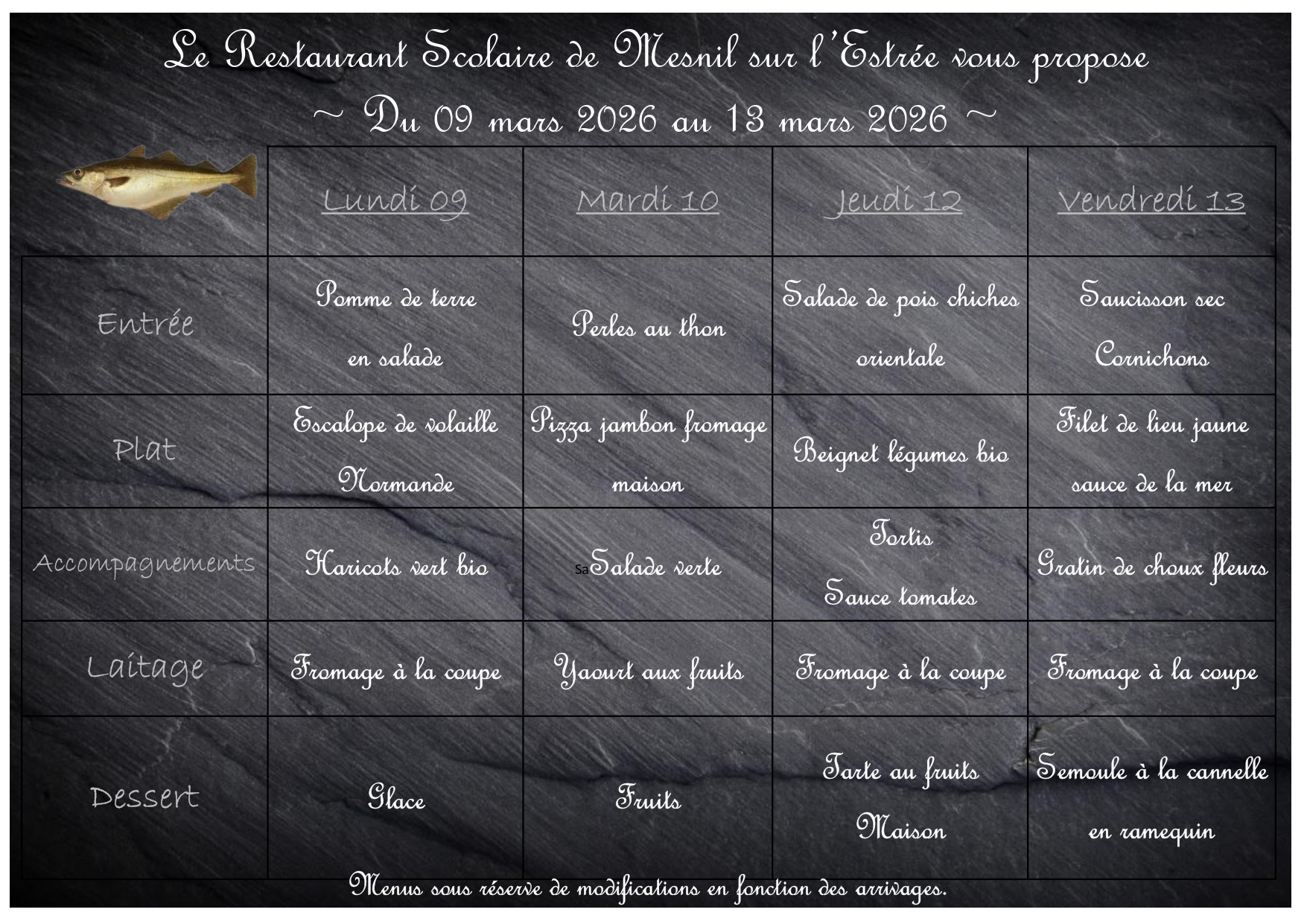 Menus restauration scolaire