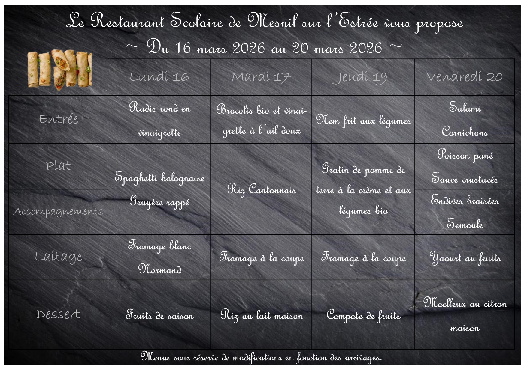 Menus restauration scolaire