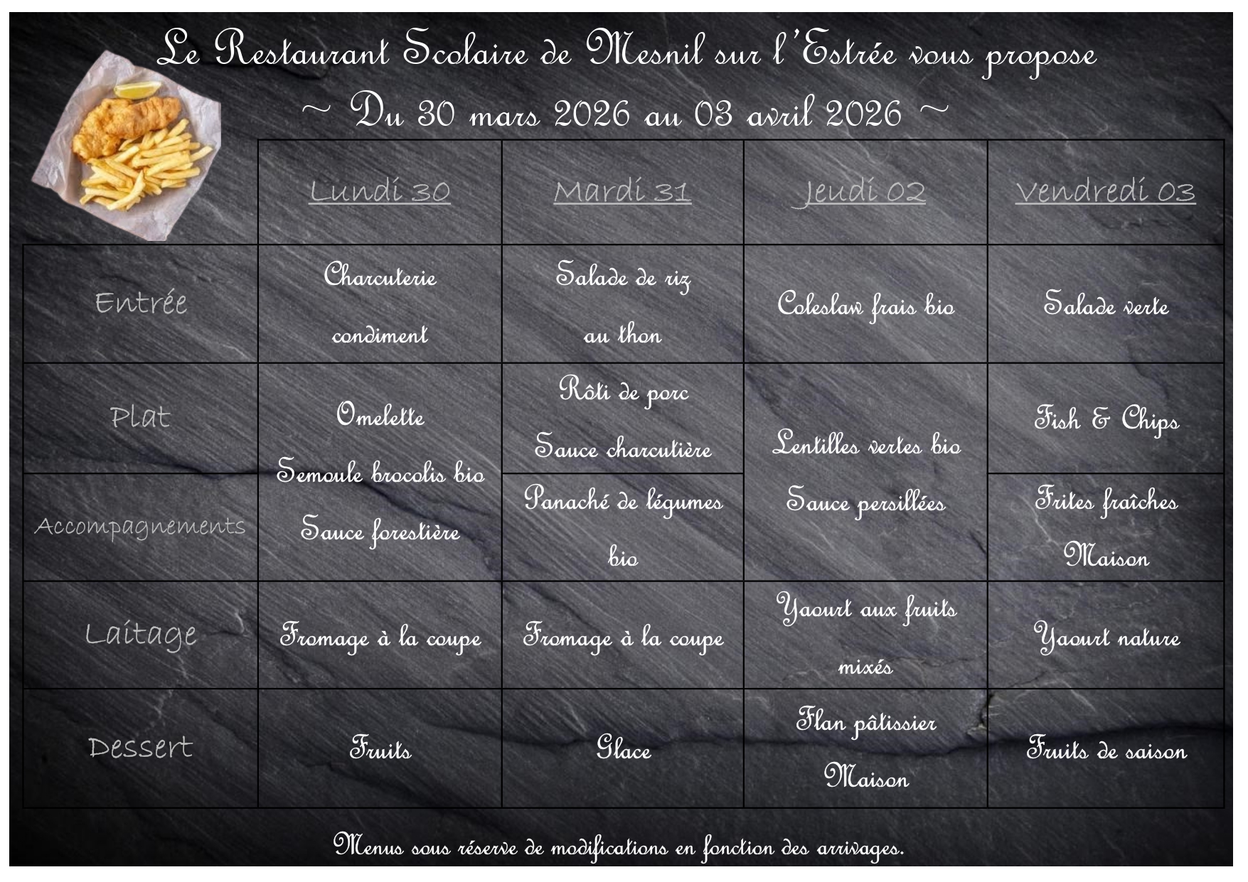 Menus restauration scolaire